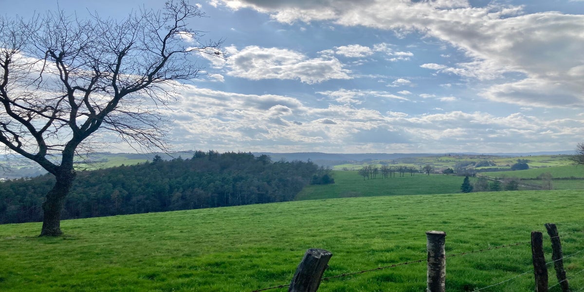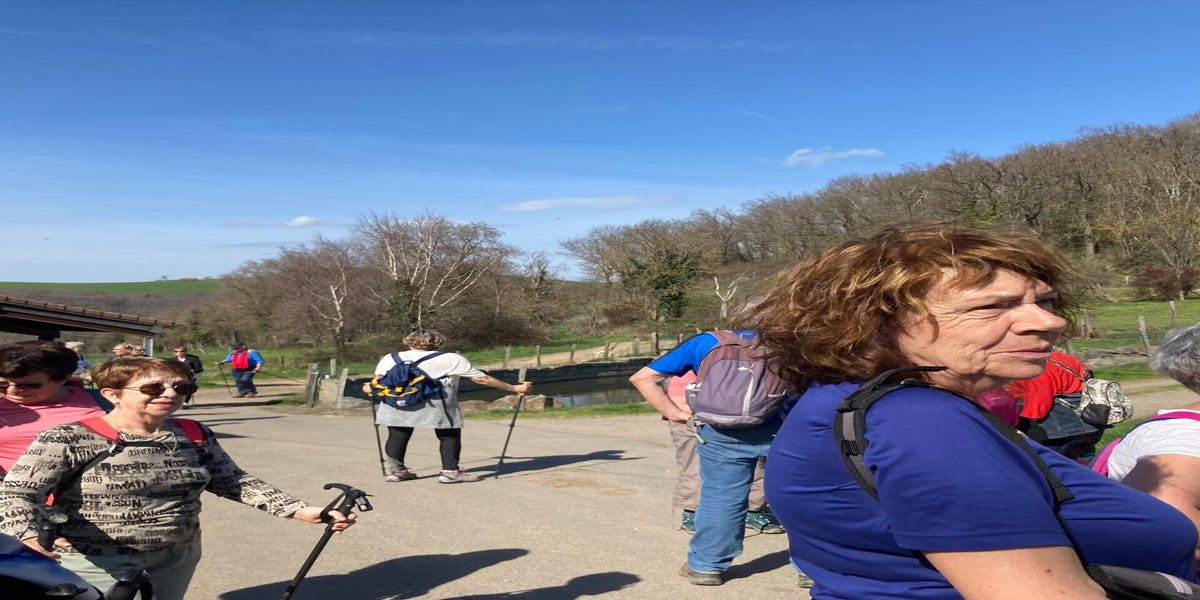 Un petit souci de parking nous permet de débuter la randonnée de suite à l'ombre, car il fait chaud en ce début de printemps. Le chemin encore très boueux longe le petit ruisseau "Le Grangent".