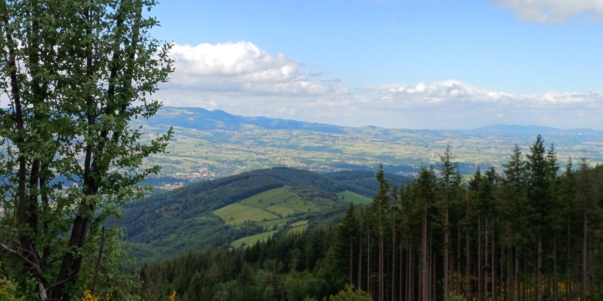 Avec un montée jusqu'au Crêt de Monthieux en effectuant un safari près de la croix de Mazet puis descente pour apprécier la vue sur le barrage de Dorlay, les monts du Lyonnais, la vallée de Giers et les mont du Jarez.