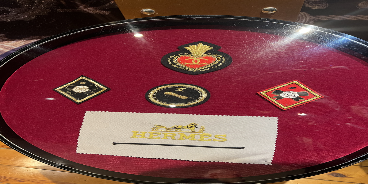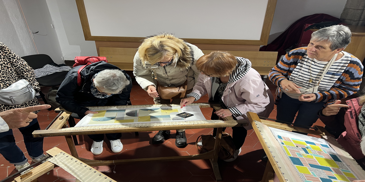 A Cervières, un village qui couronne une colline, nous nous sommes essayés à la brodure au fil d’or, même les hommes de notre groupe ont piqué. J’oublie de dire : nous étions 8 au bras de 14 filles.