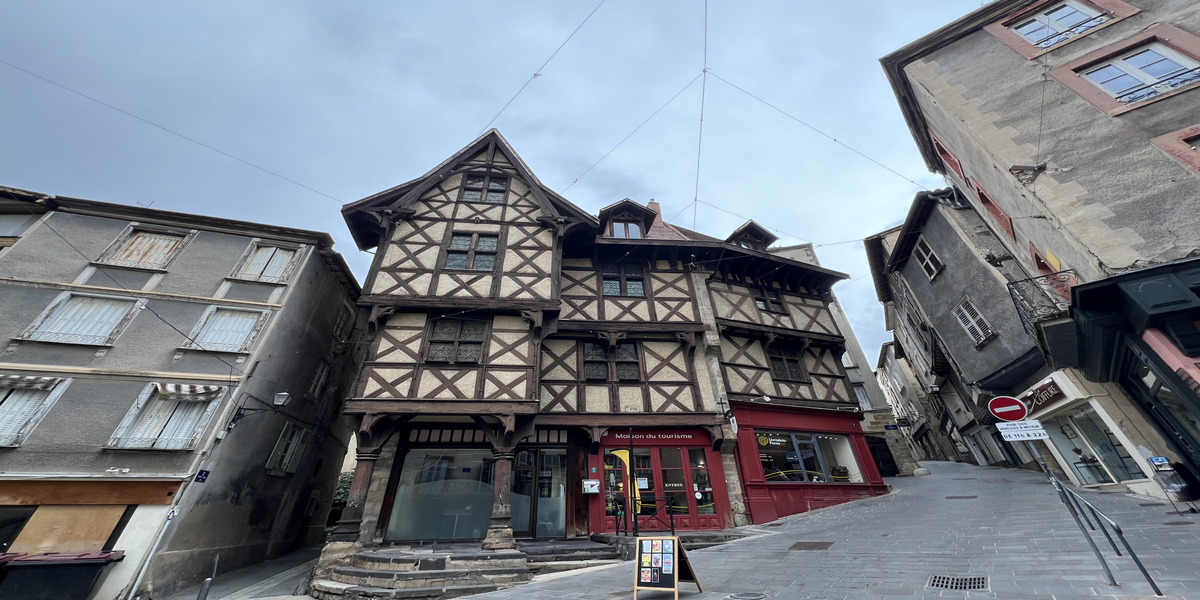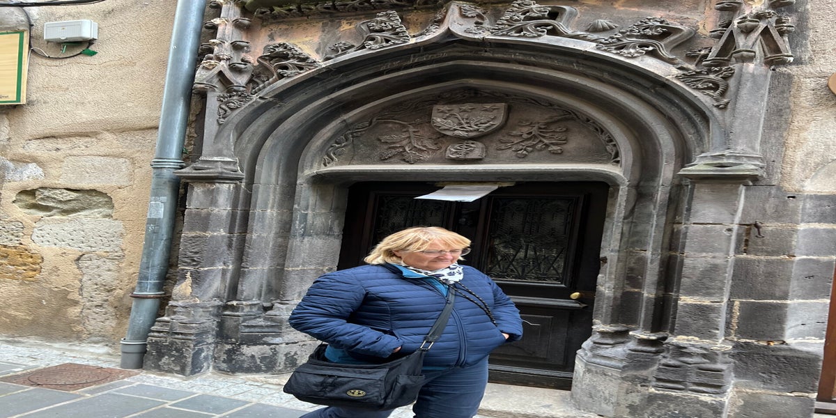 On s’est rincé la meule comme on dit par là et puis visité Thiers, un phénomène improbable de construction sur le flanc escarpé de la vallée. Que de très beaux « logis », selon le mot de notre guide, construits à pans de bois. C’était le premier Thiers, le deuxième, au plat, on l’a vu de haut. Le troisième tiers on n’en saura rien. Il faudra revenir. Enfin le musée de la Coutellerie où l’on apprend que 70 % des lames coupantes en France proviennent du bassin de Thiers employant 1 500 personnes aujourd’hui. Ils nourrissent à mots couverts un ressentiment vis-à-vis de Laguiole qui s’est érigée en champion de la lame. Baste, on va tomber las courroie.