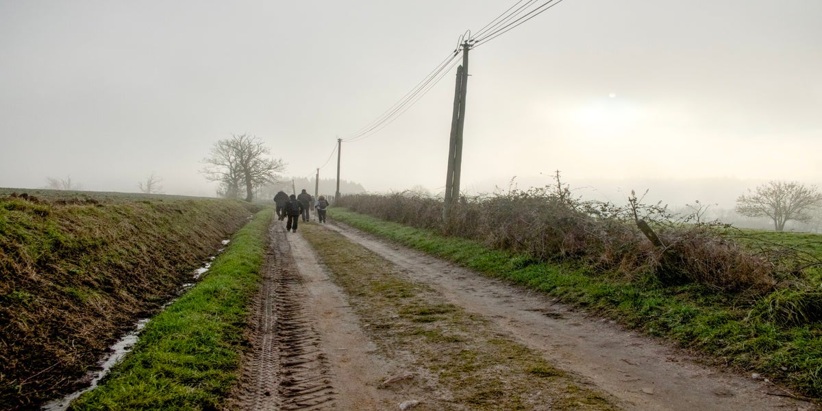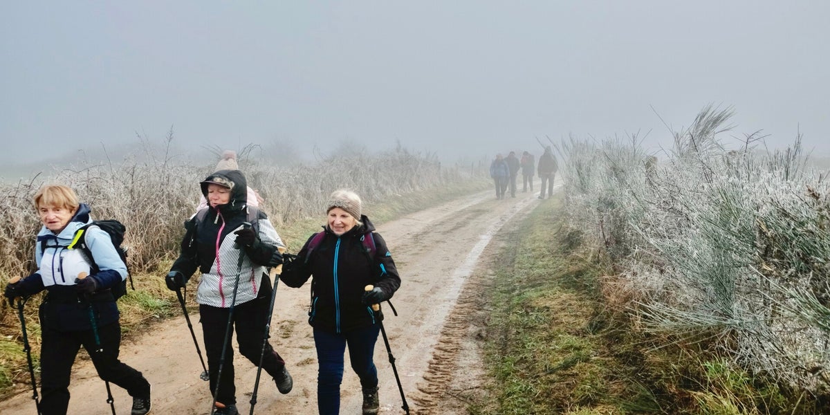 Arrivée givrée, un parcours ensoleillé en partie, un compagnon à poil nous a accompagné jusqu'à la fin de la marche terminée dans la brume.