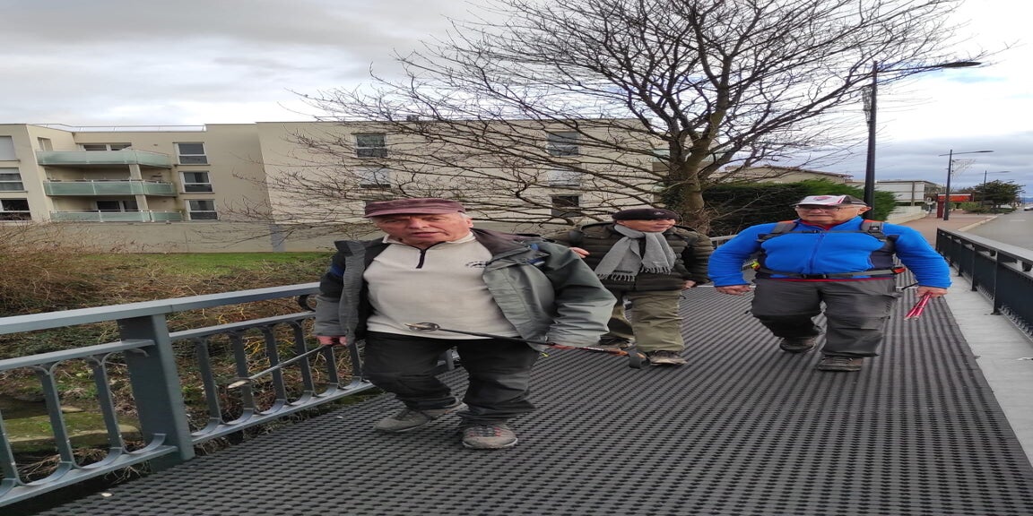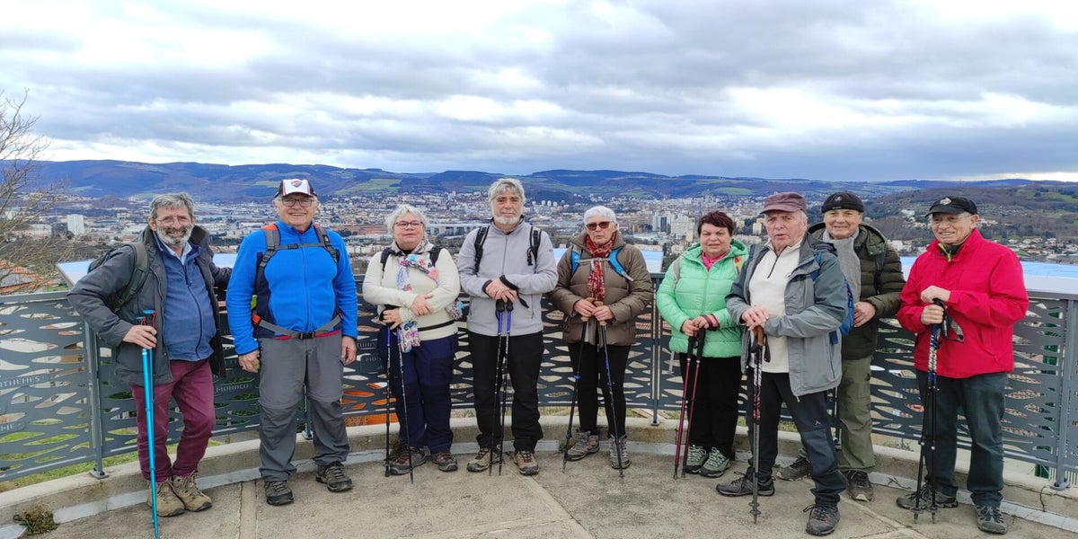 Nous partîmes 10 dans une composition inhabituelle : 7 hommes et 3 femmes. Du pied de Saint-Priest-en-Jarez nous sommes montés jusqu’en haut, à l’assaut du château qui couronnait le pic. Il en reste quelques stigmates et un observatoire érigé par la commune sur un espace que la famille héritière de la seigneurie a concédé aux Mounards. On est descendus gentiment. A L’Etrat, on remonte vaillamment avant de se précipiter jusqu’à l’Hôpital-Nord où la pluie qui tournait autour de nous depuis un bon moment nous a finalement rattrapés.