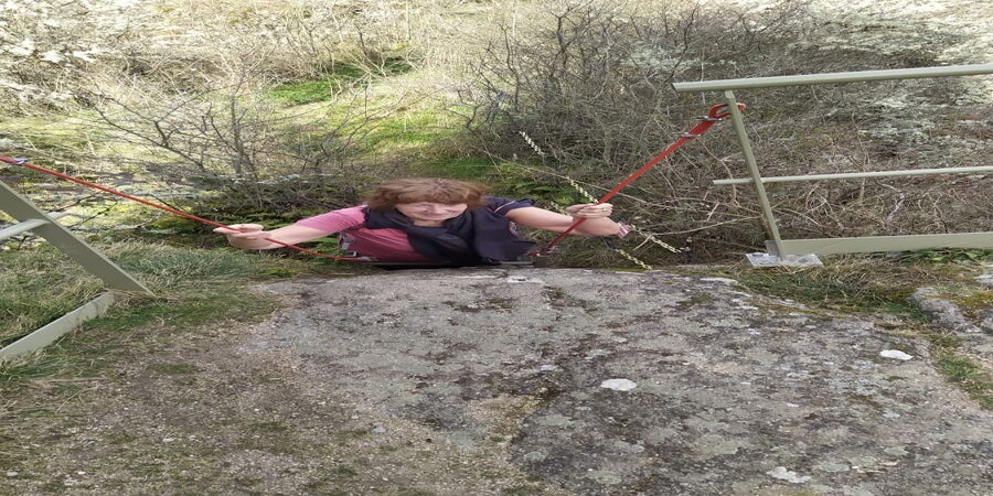 Une halte s’imposait à la tour d’Oriol pas seulement pour déguster de bons croquants mais pour grimper au balcon à l’aide d’échelles et de cordes (à découvrir)