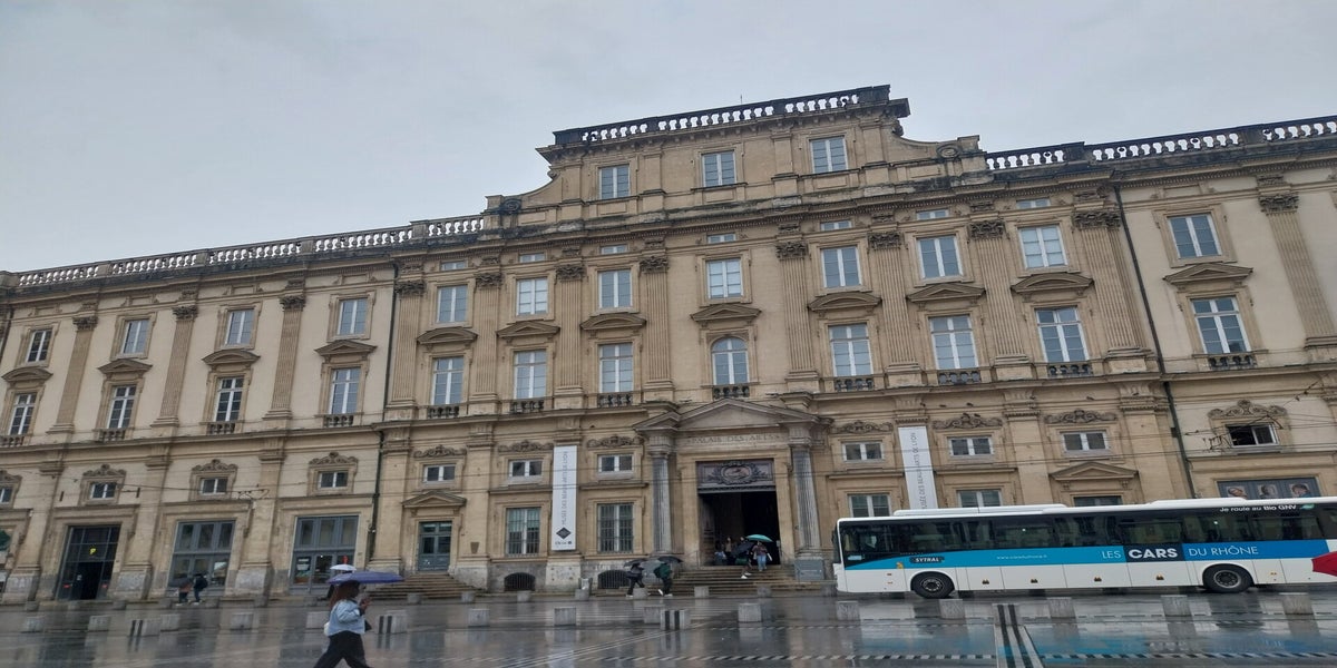 De la passerelle du Palais de Justice, belle vue sur la colonnade du Palais et sur Fourvière.