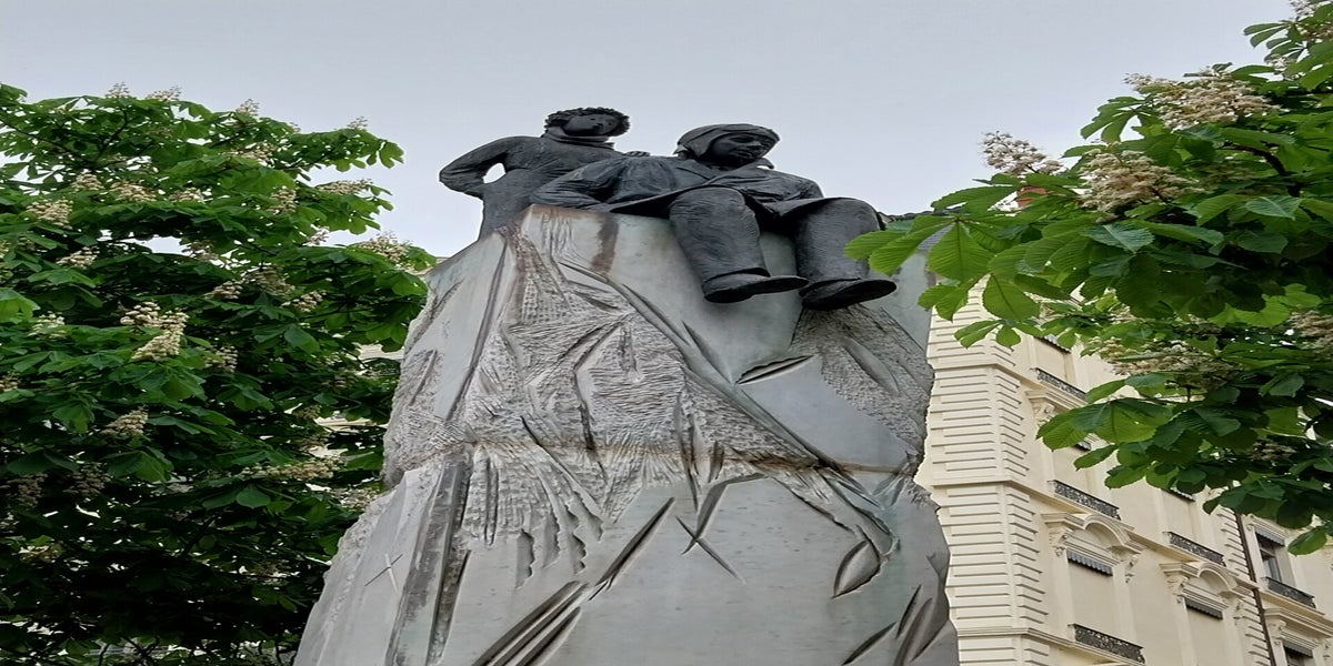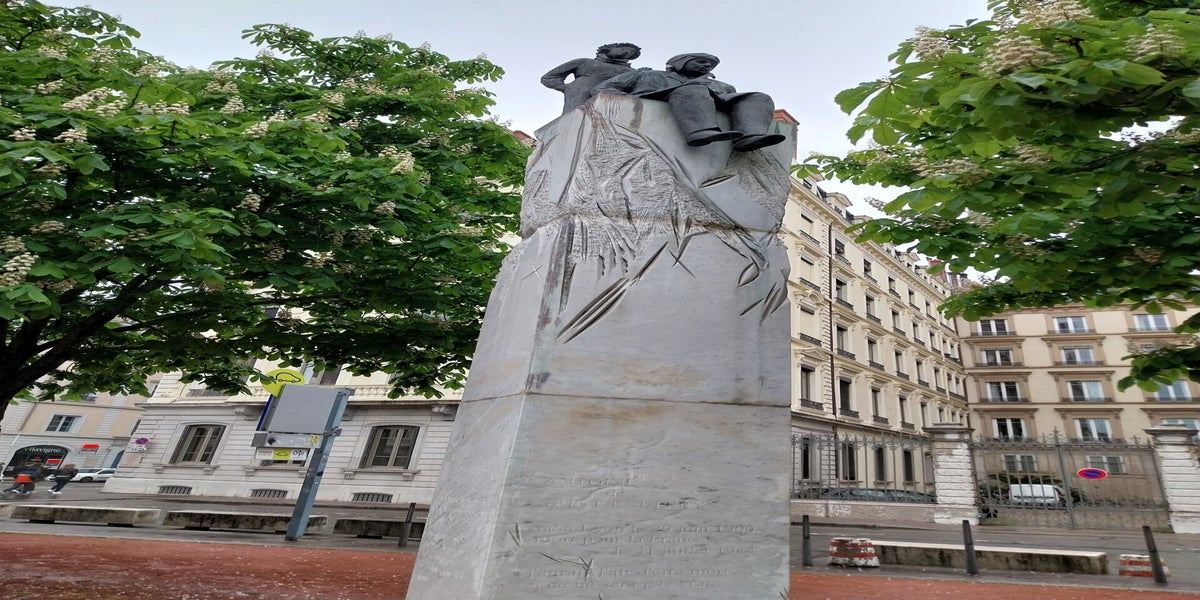 Après un bref salut à la statue de Saint-Exupéry et son Petit Prince, arrêt Place Carnot devant la stèle des Enfants d’Izieu et les Rails de la Mémoire (1173 mètres de rails pour rappeler les 1173 kms à vol d’oiseau séparant la gare de Perrache du camp d’Auschwitz).