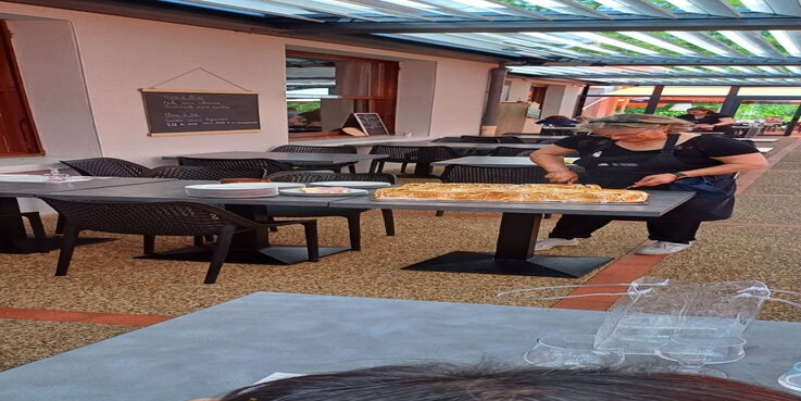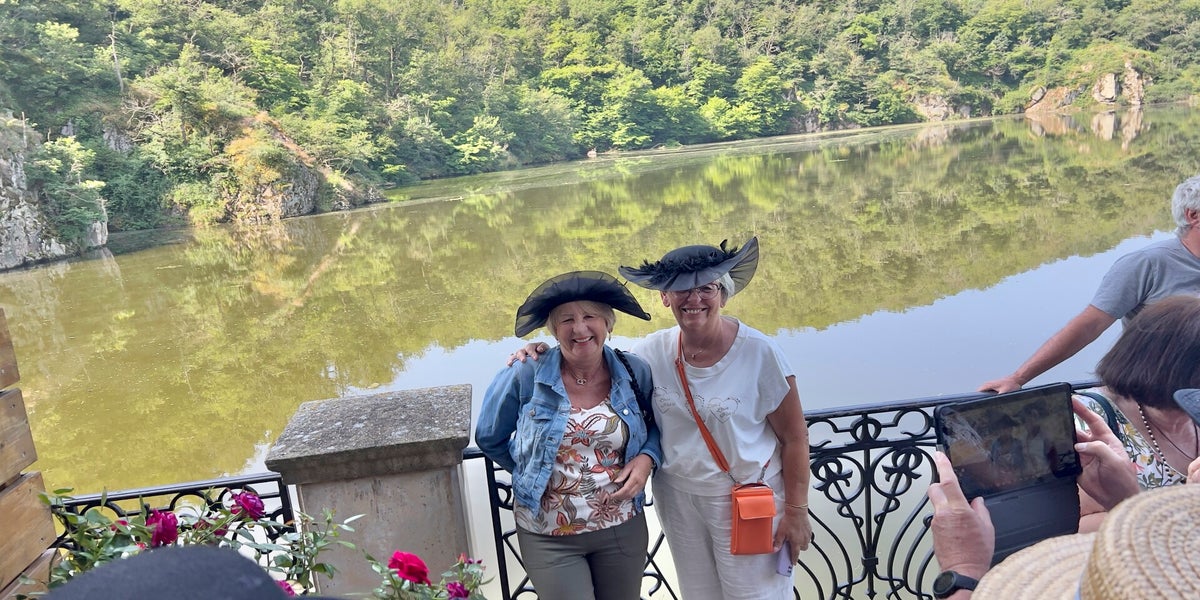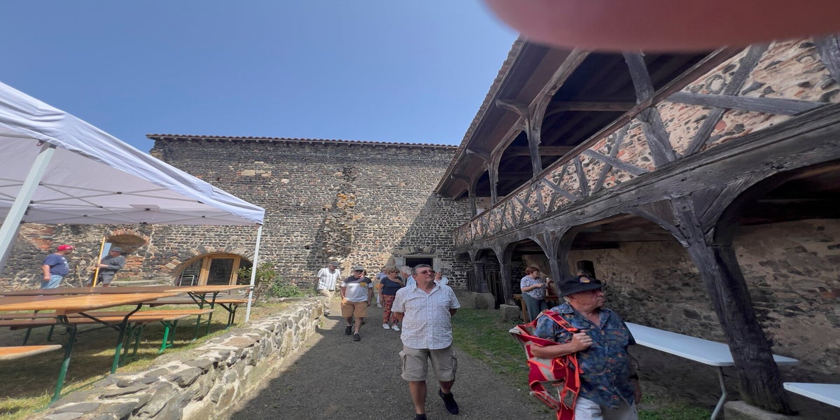 Le menu Grenouilles (venues d’Indonésie) a tenu sa réputation et l’omelette norvégienne (dont on n’a pas repéré cette fois la provenance géographique) révélé son opportunité par les 35° de température que nous avons déjà si tôt dans la saison. Il n’y a pas encore de crocodiles dans la Loire. Pas pour longtemps ! Le Pic de Montverdun sentait la fumée du four qui préparait le pain pour la fête du lendemain. La galerie du prieuré avait manifestement senti aussi la fumée mais était restée encore debout depuis le XIIIe siècle. Chapeau ! Saint Porcaire qui succomba ici en 735 sous le fer des Sarrazins a dû lui accorder protection. Des femmes ont tenté avec insistance de nous entraîner vers des parties intimes du prieuré, nous avons résisté afin de rejoindre à l’heure messire d’Urfé. Son valet dévoué nous a livré un prône à la dévotion de Claude d’Urfé, fondateur de la Bâtie, ce château « d’agrément » où jouait dans l’enfance, Honoré, son petit-fils, connu dans toute l’Europe pour avoir commis la première série romantique à succès. En quittant le château nous n’avons pas été initiés aux déambulations parmi les élévations topiaires des jardins, tant le soleil dardait encore des rayons délétères. On s’est précipités lentement vers le bistrot.