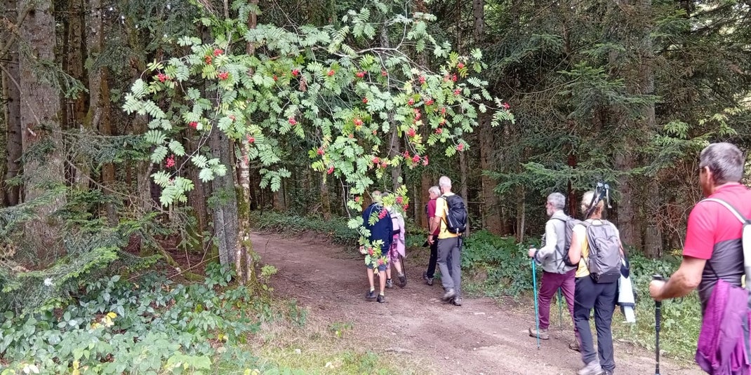 Le chemin emprunté était bordé de murs de mûres sauvages, que les randonneurs n’ont pas manqué de goûter. Les rires et les échanges complices se sont vite accompagnés de langues colorées de bleu, traces gourmandes de cette récolte improvisée.