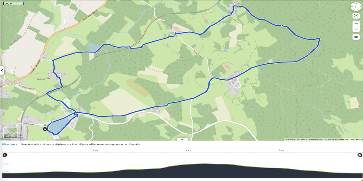 La marche douce le fut, malgré un vent assez vif sur les reliefs exposés. Du plan d’eau on s’élève gentiment ; la voie du train touristique on la rencontre deux fois puis nous voilà sur une côte un peu raide avant de redescendre tranquillement entre forêts et prairies ouvertes, bien vertes. Un bon moment, sous un ciel clément, en dépit d’un genou douloureux pour l’une d’entre nous, mais aventurière dans les gènes.