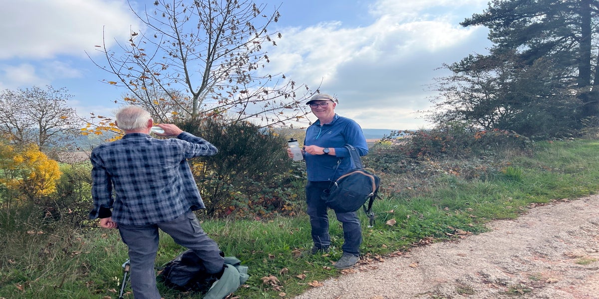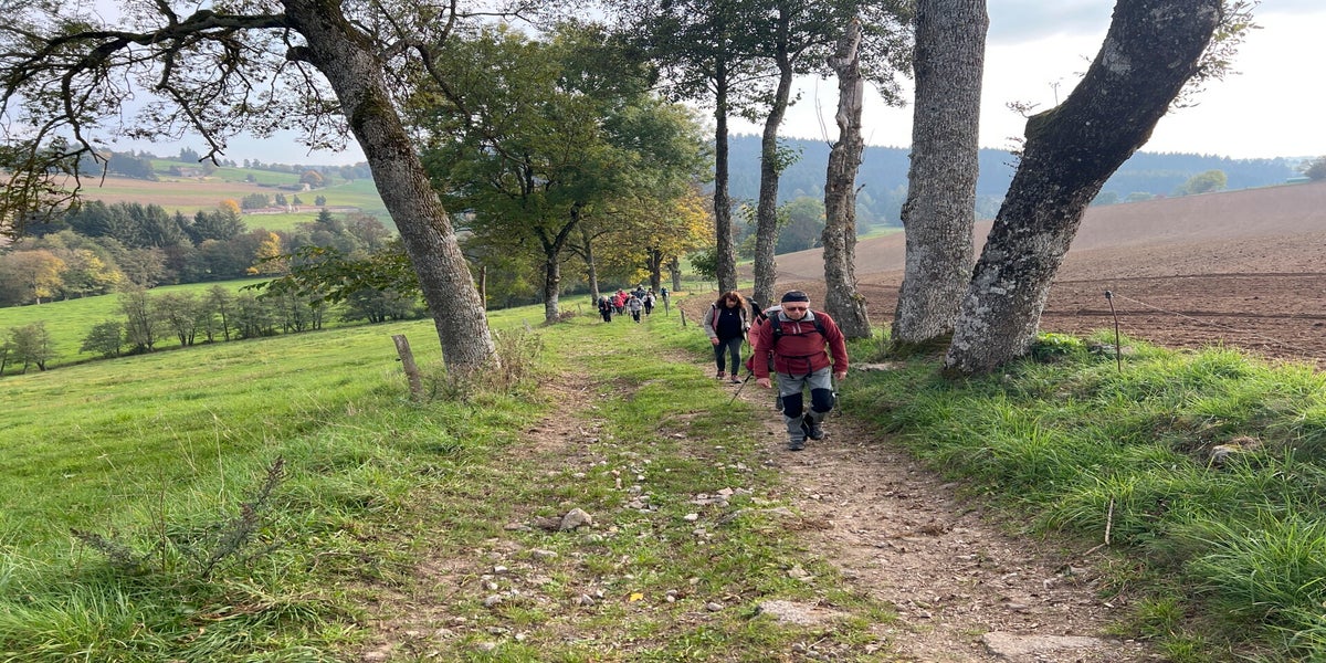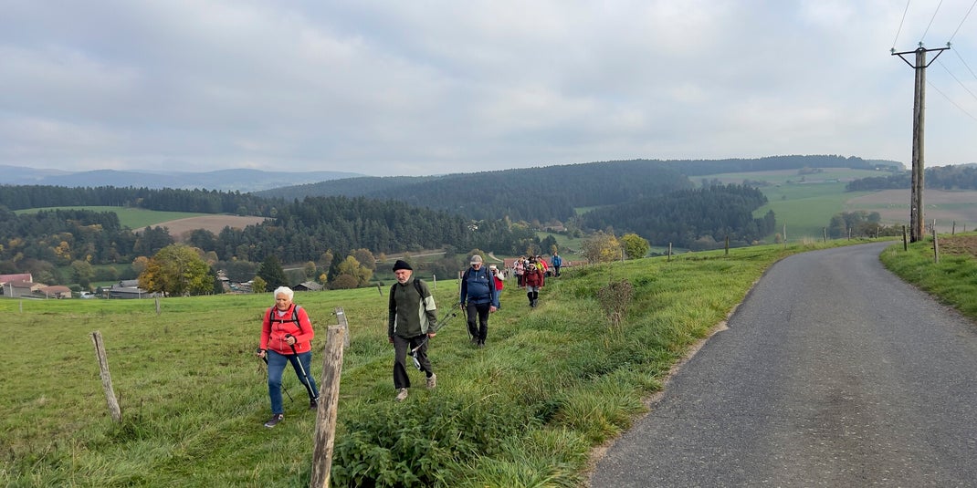 Après trois beaux dénivelés qui ont fait chauffer les mollets, le groupe a retrouvé avec plaisir le clocher de l’église de Jonzieux, signe du retour au point de départ. Une belle boucle automnale, rythmée par la lumière changeante et la convivialité des marcheurs.