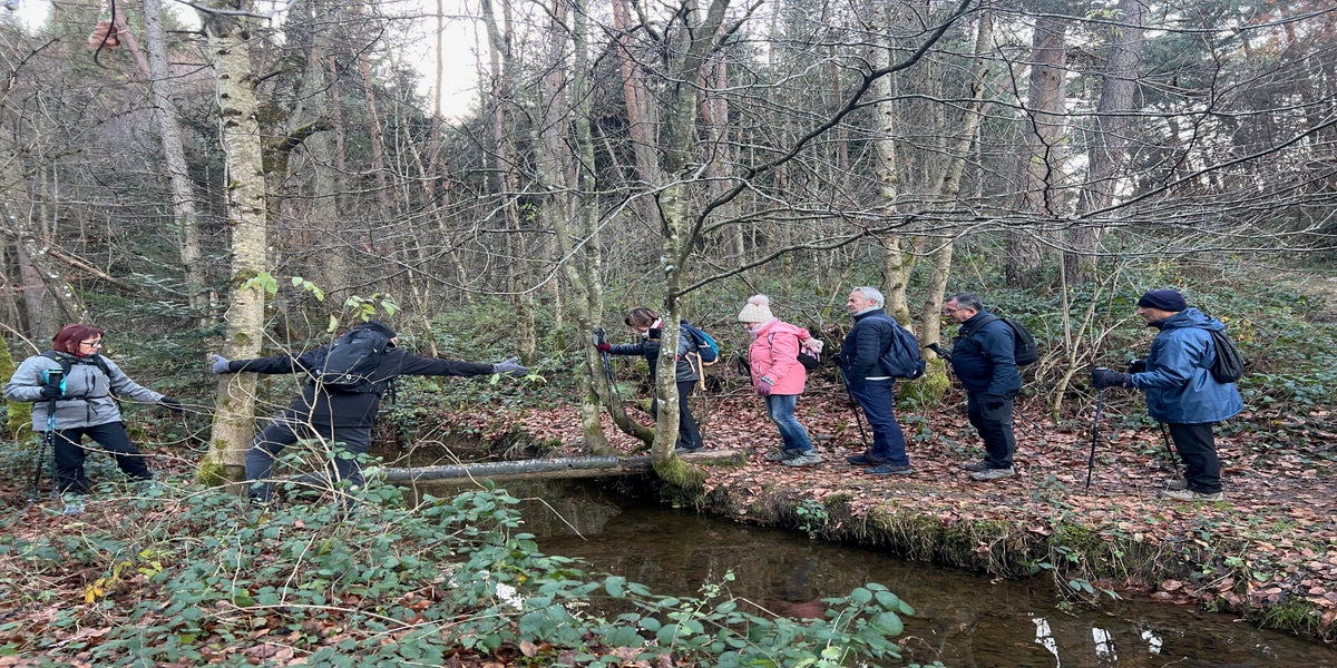 Nous étions 17 marcheurs au départ, rassemblés sous un soleil bien présent, mais qui ne parvenait pas tout à fait à compenser la fraîcheur piquante des 0 °C. Dès les premiers pas, chacun a rapidement trouvé son rythme, aidé par un dénivelé raisonnable de 230 m parfaitement adapté à la cohésion du groupe.