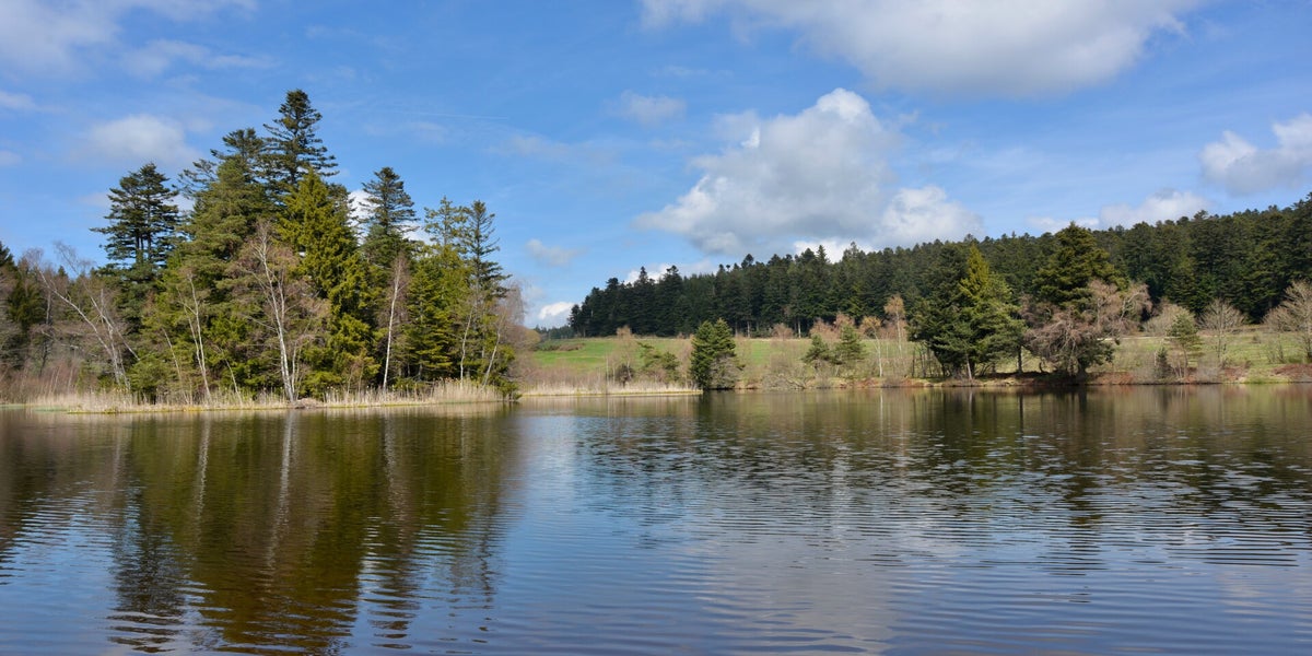 Ce jeudi, la forêt était à la marge. En lisière de bois on cheminait aussi parmi les prairies, repeintes de frais en vert et piquées du jaune des pissenlits ou des toutes fraîches coroles de jonquilles, voire des massifs de boutons d’or sur les pierres d’un ruisseau sauvage. Calmes et domestiqués en revanche, les étangs de Prélager font la queue paisiblement. Surprenant, le chemin de Pétaloup dallé à la romaine ; merveilleux, ce chemin bordé de murs de pierres traversant une hêtraie inattendue. On y croirait rencontrer Merlin. Voilà donc une expérience nouvelle de Valadon, très colorée par un temps idéal.
